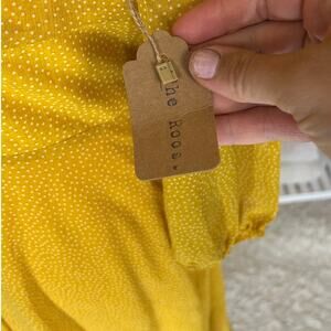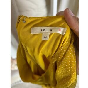 Le Lis Women’s Size M Yellow Polka Dot Lace Up Waist Lined A Line Dress