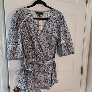 Lane Bryant Blue and White Floral Top 24P