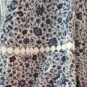 Elegant dress with a floral pattern. Features a stylish wrap design. Red, white and blue with beautiful details. The pit to pit is 27".