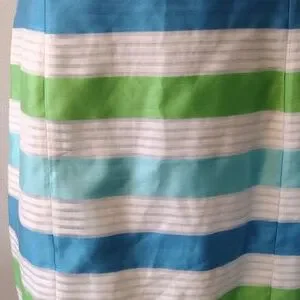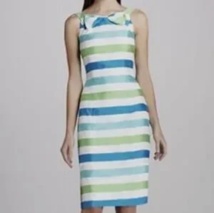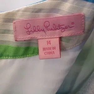 Lilly Pulitzer Silk Blend, Striped Blue, White and Green Sheath Dress, Size 14