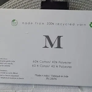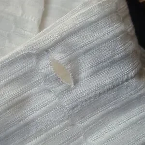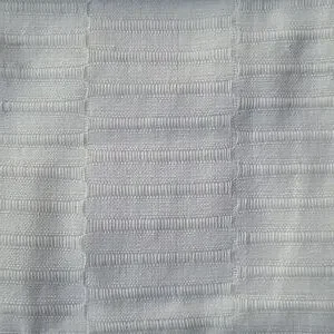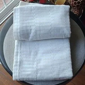 Elegant White shower curtain with a textured pattern, button hole hooks, made Made from recycled materials, 60% cotton, 40% polyester