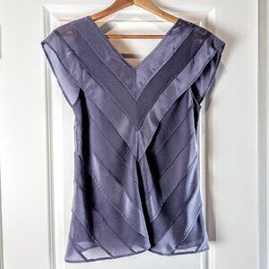Beautiful sheer sections alternate with shimmery sections to create an overlay in this sleeveless silk top from Banana Republic with a tiered V-neck front and back.