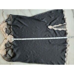 Women's Victoria's Secret Size Large Black with Lace Trim Sheer Sexy Slip Dress Nightie/Nightgown Lingerie with Side Slit and Small Bow