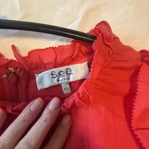 Chic red dress with ruffle sleeves. Perfect for any occasion. Lightweight and stylish.