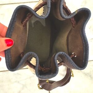 Vintage Dooney & Bourke AWL Drawstring Bucket Bag – Beige & Brown Leather