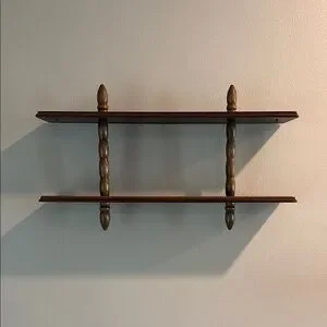 VTG MCM 2-Tier Turned Wood Spindle Wall Shelf