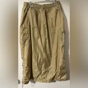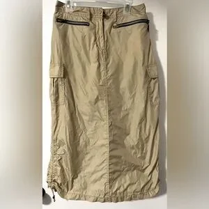 This is a great all around skirt. This skirt has tons of pockets! Two zipper front pockets, 2 side cargo pockets, and two back zipper pockets.