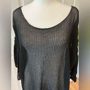 Zara black knit mesh top oversized with cinched sleeves size small