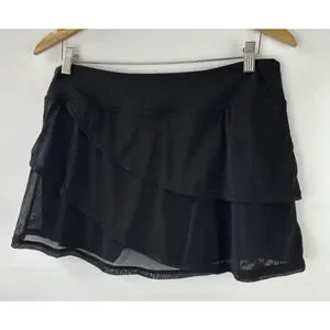 NWT Coco Reef Castaway Black Illusion-Overlay Mesh Layer Swim Skirt Shorts Large
