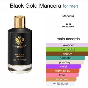 Mancera Black Gold Luxury Fragrance Bottle with Metallic Accents