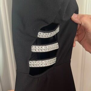 This stunning black dress by Speechless showcases a chic halter neckline and a captivating backless design, ideal for cocktail events. The bodycon fit accentuates your figure, while the side cutouts add a modern twist. Crafted from a stretchy fabric, it ensures both comfort and a sleek silhouette.