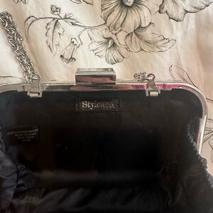 This vibrant wristlet from Style & Co. features a striking floral design in pink and blue, perfect for adding a touch of elegance to any ensemble. The compact size and sleek design make it an ideal accessory for both casual outings and special occasions. Crafted with attention to detail, this wristlet combines style and functionality effortlessly. Small discoloration on the corner. Otherwise in good condition.