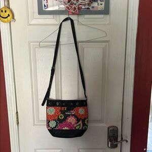 Vera Bradley Black and Red Crossbody Bag with Floral Design