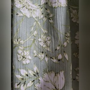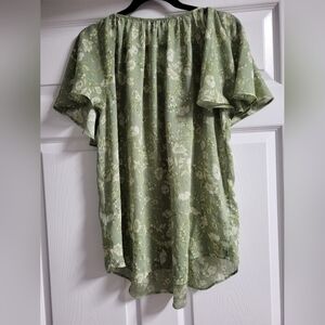 Chaps - Womens Floral Green Gauzy Peasant Blouse - Size L , Flutter Sleeves, keyhole tie neck