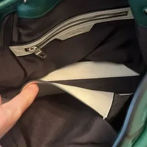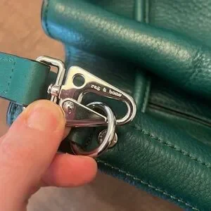 This is a very special vintage rag & bone large leather “Aston” Bucket Bag that retailed new in 2015 for $795. See my photo showing the write-up on this bag when it debuted in 2015. This bag looks like it was never carried. It’s deep Hunter Green in color with silver hardware. Some photos may appear blueish, it’s not blue at all. Bag measures approx. 12” high by 10” across bottom (note that the bag expands way beyond 10” wide at the sides and top). Strap drop is 16” as shown in my last photo, (adjusts shorter or longer). The leather is very thick, not the thin leather in today’s cheaper bags. This makes the bag have some weight to it, but worth it for the quality. My last photo isn’t that great (ha ha), but it will give you an idea of the size of the bag when on your shoulder.