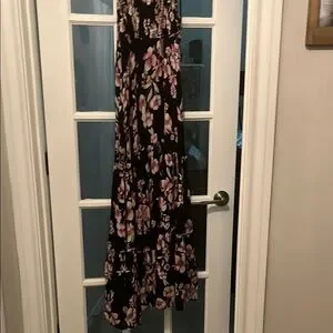 🌼Elegant black maxi dress featuring a beautiful floral pattern. Ties at shoulder with elastic bodice. Two tiered layers. Free people tag was cut out Perfect for any occasion.🌸