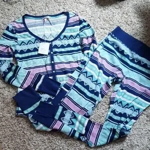 Victorias Secret Blue and Pink Pajama Set with Geometric Print