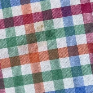 (SEE) There is 1 tiny stain on the right arm, barely noticeable.