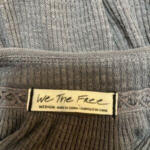 We The Free Gray Waffle Ruched Blouse with Buttoned Details