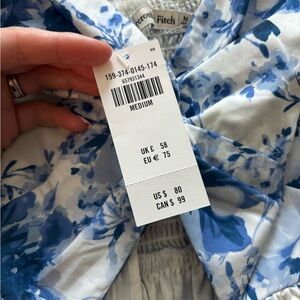 Abercrombie & Fitch Blue and White Tie Front Puff Sleeve Mini Dress