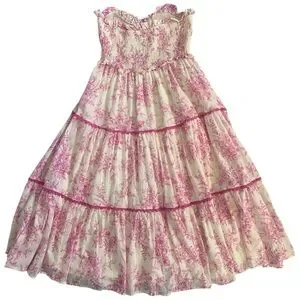 &merci Beautiful Pink and White Floral Strapless Dress Sz L