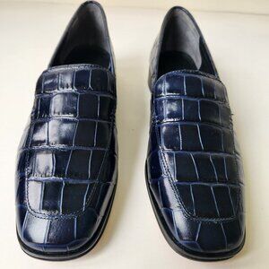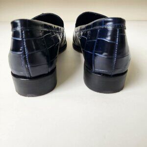 J.Crew Maison Navy Blue Crocodile-Embossed Italian Leather Loafers Work Classy