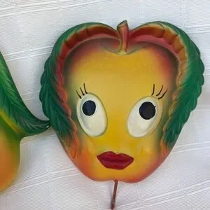 Vintage Anthropomorphic apple pear kitchen wall decor