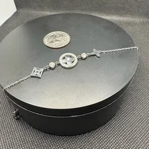 Elegant silver chain bracelet featuring sparkling crystal accents. Perfect for adding a touch of sophistication to any outfit.