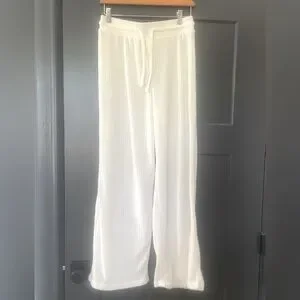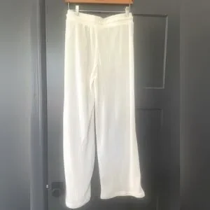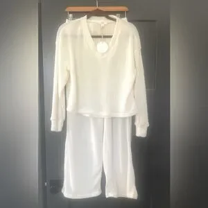 Experience ultimate comfort with the Hippie Rose White Loungewear Set, crafted from a soft and cozy fabric perfect for lounging or sleeping. This coordinated set features a long-sleeved top and matching wide-leg pants, both designed for a relaxed fit. Ideal for unwinding at home, this pajama set combines style and comfort effortlessly. New with tags.