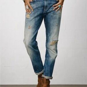 Denim & Supply Ralph Lauren Boyfriend Blue Jeans with Distressed Details
