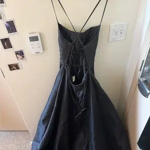 This stunning black evening gown is perfect for any formal occasion. Its elegant design and classic color make it a timeless addition to your wardrobe. Has only been worn once.