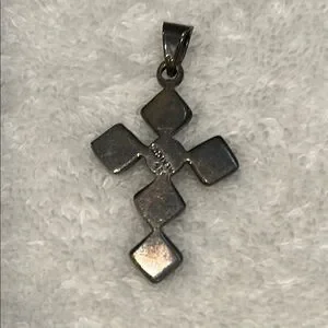 Elegant turquoise cross pendant with a unique design. Perfect for adding a touch of color to any outfit.