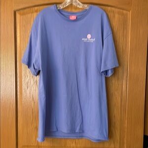 Lavender tee with farm scene graphic. Features barn and tractor design.