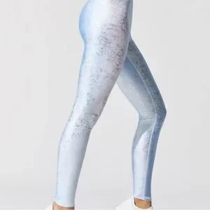 Experience the perfect blend of style and performance with Terez's blue and silver ombré leggings. These form-fitting leggings feature a high waistband and a unique gradient design, transitioning seamlessly from blue to silver.