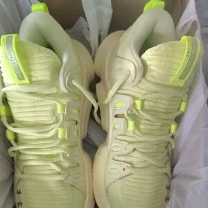 Bold Under armour shoes in neon yellow. Stylish and modern look. Size 8, worn 1x only for about 30 minutes. They are too tight for my feet. They are in new condition.
