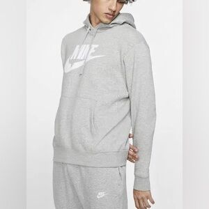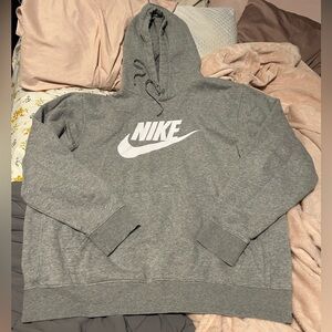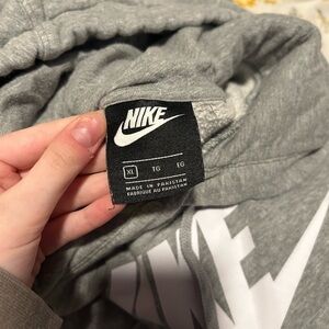 Experience the perfect blend of comfort and style with the Nike Gray Sweatshirt. This classic pullover hoodie features a soft cotton/polyester blend, making it ideal for both casual wear and athletic activities. The iconic white Nike swoosh adds a touch of sporty elegance to this versatile piece.