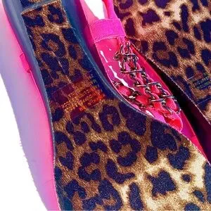 Bright and stylish pink sandals with a leopard bottom. Comfortable and easy to wear for any occasion. Brand new condition.