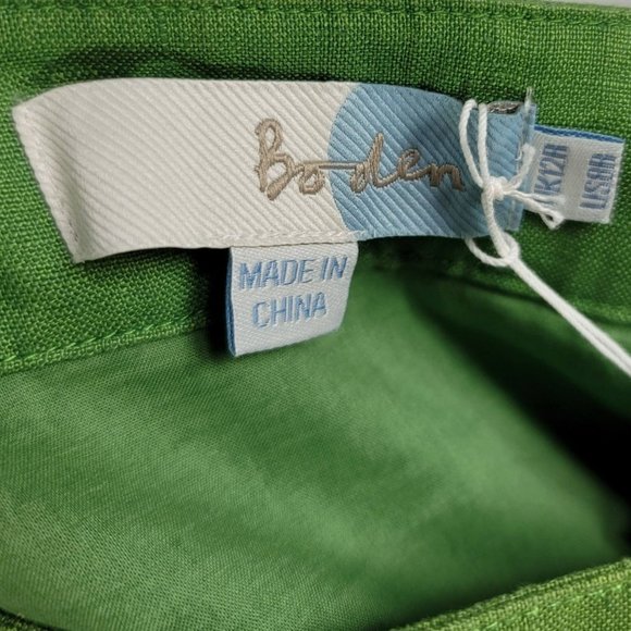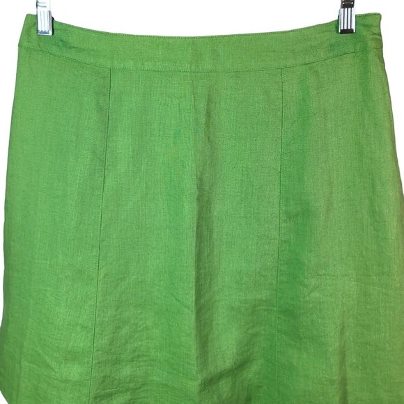 Chic green skirt with blue and white stripes. Perfect for casual outings.