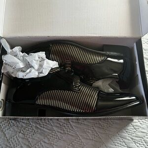 These elegant Oxford shoes feature a striking black and gold color scheme, perfect for formal occasions. The glossy finish adds a touch of sophistication, while the classic design ensures timeless style. Ideal for making a statement at any event.