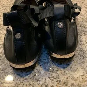 Stylish black flats with elegant ribbon and gold accents. Comfortable and versatile. Never worn! 8.5