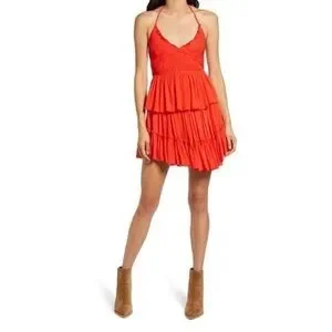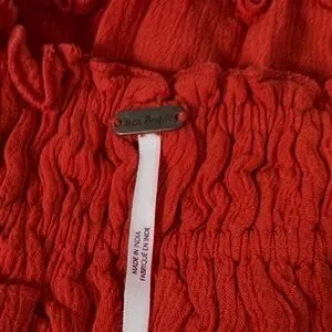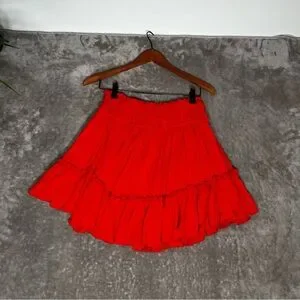 Free People Hooked On You Red Orange Ruffle Elastic Skirt Size Small