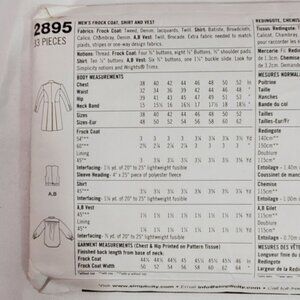 Simplicity 2895 Mens Western Frock Coat Vest Costume Sewing Size AA 38-44 UNCUT