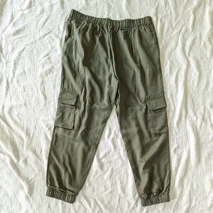 Comfortable olive joggers with elastic waistband. Ideal for everyday wear.