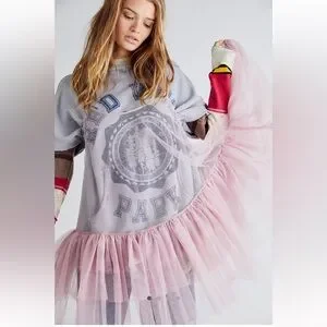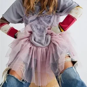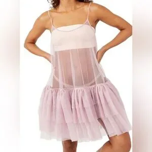 Push Send Free People Tulle Slip Dress Mini Silverberry Ruffle Tier