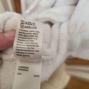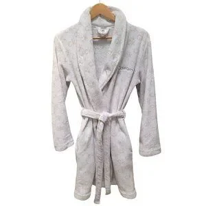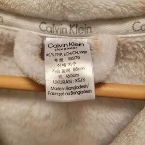 Calvin Klein XS White Plush Robe With CK Logo Pattern Tie Belt Long Sleeves