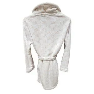 This robe beckons with its pristine white charm, adorned with subtle CK logos across a soft, plush surface. Crafted for snug evenings or mornings, it wraps you in cozy luxury. Its tie belt ensures a secure fit, while the tall collar adds an extra layer of warmth. A cocoon of comfort awaits.