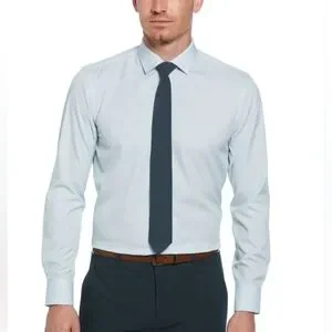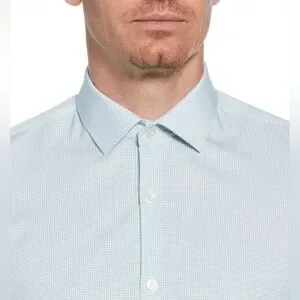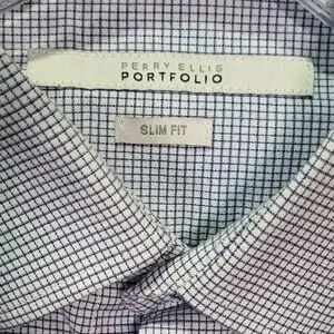 Perry Ellis Slim Fit Blue Checkered Print Long Sleeve Dress Shirt Small (32/33)