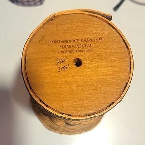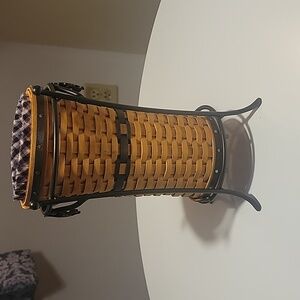 Longaberger Umbrealla Stand, Basket with liner and Basket protector- J.W. Collection Minatures 2003-2004 Edition - Basket is about 6.75" tall, stand is about 8" tall - Basket Linning is 100% Cotton - Made in USA - Basket Protector has small chip at top (see pictures)