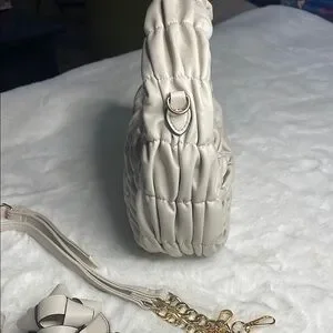 Juicy Couture- Cream Quilted puffer Handbag with Gold Accents & Key chain