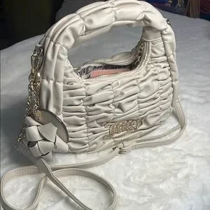 Juicy Couture- Cream Quilted Handbag with Gold Accents & Key chain